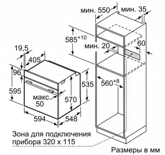 +Максимальная температура духовки, (°C)