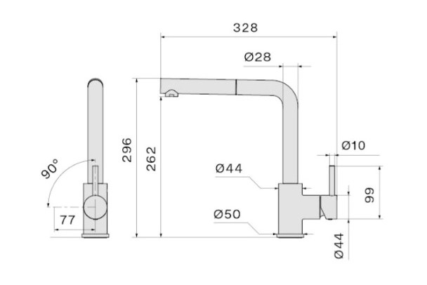 • Выдвижной излив: Да.
